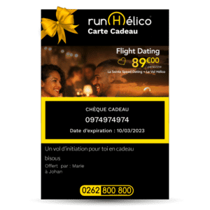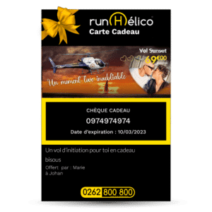 Les coffrets cadeaux RUN HELICO ont été créés pour vous. Choisissez dans notre gamme de vols en hélicoptère, dans une boite métallique élégante, une carte-cadeau permettra de réserver le vol hélico choisi.